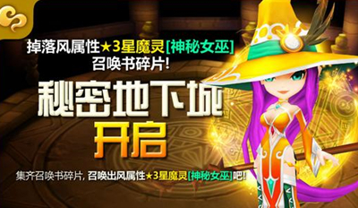 魔灵召唤本周秘密地下城活动开启啦~本周玩家们参与秘密地下城活动可以获得风属性3星魔灵神秘女巫召唤书碎片,集齐一定的碎片可以兑换神秘女巫。下面小编就为大家介绍一下魔灵召唤风属性3星魔灵神秘女巫秘密地下城开启