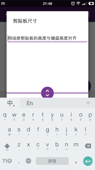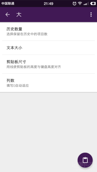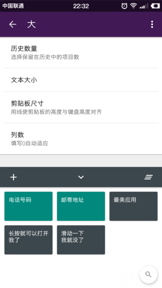 文本大小和每行显示的列数也可以自己调节,我个人比较建议将字号调小一些,并将列数调为三列,看起来比较精致而且还可以显示更多的内容,而且默认的字号实在是有点大~~剪贴板的尺寸也可以调节,你可以把剪贴板的高度调成和键盘一样的高度,这样双击唤出剪贴板的时候看起来一点都不违和。最最贴心的是,原生剪贴板还提供了专门的调节页面让你比着键盘高度来调节剪贴板的高度,简直是强迫症患者的福音!!!!!