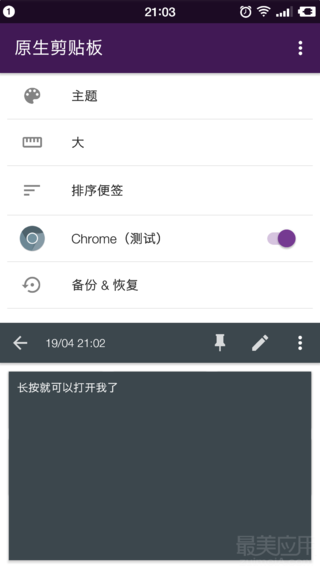 原生剪贴板Native Clipboard是一款非常好用的手机剪贴板应用,点两下即可快速唤出剪贴界面,能快速记录你复制的内容,并可以直接编辑,针对chrome浏览器进行了优化,给大家带来更好的剪切体验。