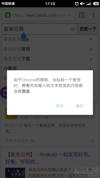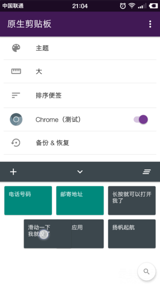 原生剪贴板针对 Chrome 浏览器还有特殊的优化。当你在手机上面打开 Chrome 的时候,原生剪贴板会自动变成一个紫色的粘贴气泡,点开气泡之后,你只需要在剪贴板中选中你想要输入的内容,这个内容就会自动输入到文本框中,省却了再次粘贴的操作,十分方便!