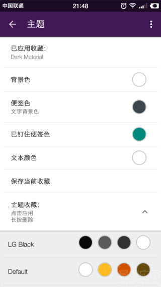 原生剪贴板还提供了许许多多的自定义选项。剪贴板的颜色主题可以根据自己的喜好自由搭配,如果自己搭配不好的话也没关系,原生剪贴板还提供了除了原生主题以外的两种精致美观的主题:「LG Black」和「Dark Material」。