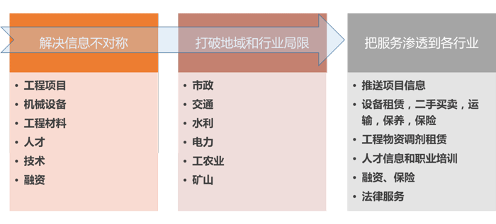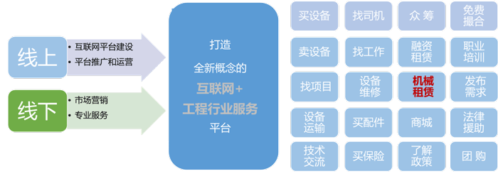 工程行业由于经济环境的影响,项目的利润普遍下滑,对于参与工程建设的各方来说,传统线下的提供产品或服务的渠道和模式,存在着信息、地区和行业之间的不对称,互联网+工程的变革刚好可以在解决这些不对称方面发挥自己的优势。虽然现在工程行业涌现出了各种不同的互联网+工程平台,但多数都是局限于工程行业整个供应链中某一个阶段的功能开发与展示,还没有出现任何一家可以像机械酷这样以工程机械租赁为入口,涵盖包括设备租赁在内的二手设备买卖,设备维修保养,运输,工程行业人才及培训,工程项目和物资流转,行业资讯以及法律援助等等整个工程行业上中下游的业务变革,以及整个产品生命周期管理的平台。机械酷以专业的团队,一流的管理和用心的服务从江西,山东,四川,江浙沪以点及面的辐射全国。