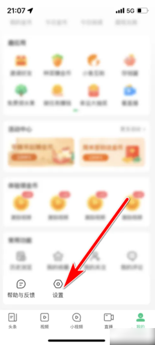 第一步、进入手机趣头条的首页,展开【设置】的列表。