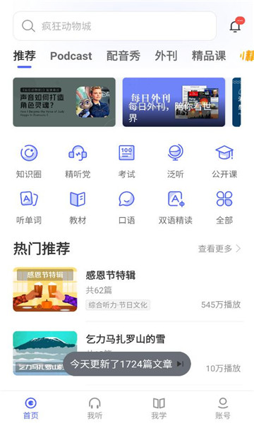 - 拥有每天更新的海量听力库,并独家提供智能语音高亮跟随功能