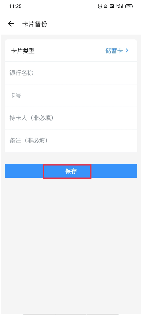 (2)填写卡片类型、银行名称、卡号、持卡人等个人信息,最后点击“保存”按钮即可添加成功。