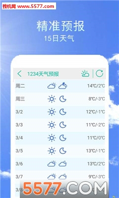 1234天气预报app安卓版官网是一款准确预报15日天气的软件,1234天气预报app安卓版官网提供全国所有城市及下辖主要乡镇的15日天气,推荐热门城市(北京、上海、广州、成都等)天气,24小时逐时天气报道。更有实时空气质量&空气质量预报,使您生活出行更便利。