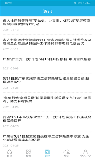 各项功能在服务专区中,依照就业创业,社会保障,人事人才,劳动关系一一分类