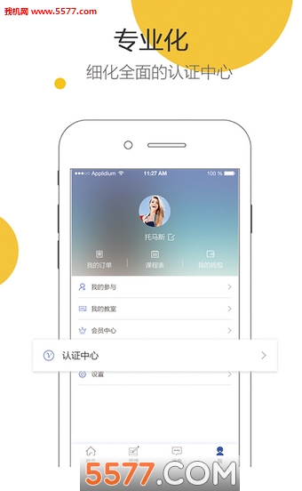 4.我的主要功能:个人资料、订单、课程表、钱包、参与、设置、会员中心等。