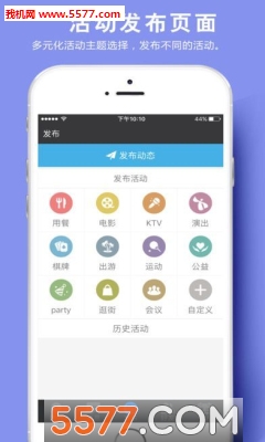 1、发布活动:预设同学会、聚餐、运动、K歌、出游等场景,个性模块化定制,让每个人尽情施展组织和领导才华,变身活动社交达人;