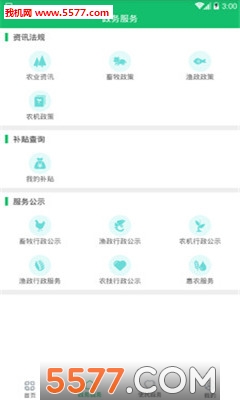 其中政务服务涵盖资讯法规、补贴查询、以及服务公示;便民服务主要包括专家咨询、价格查询、气象服务等便民信息;两大版块轻松解决农户的各种涉农问题