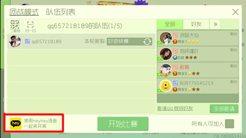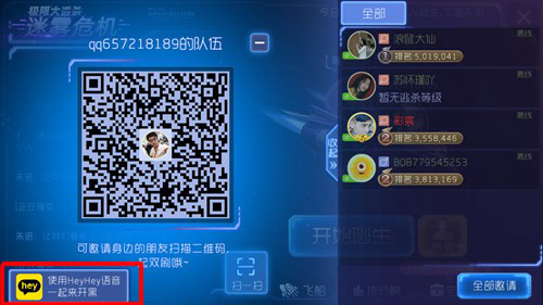 当然在大逃杀里面也能看到,同样点击组队,左下角就有heyhey语音。
