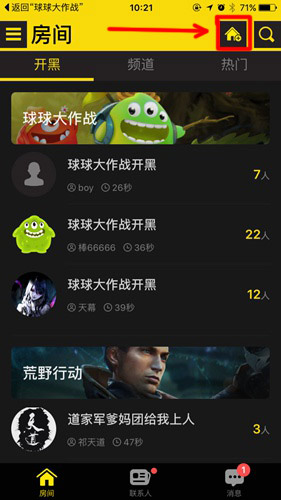 我们可以在自己的房间中邀请好友进入,然后返回球球大作战,就能实时语音在线组队了。