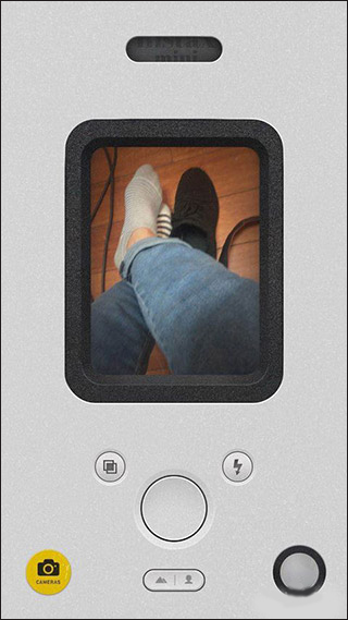 目前 NOMO 中有两台相机。默认的 INS W 是模拟 InstaX 即时成像相机。而黑色的 135 B 是模拟 Lomography 相机的效果。