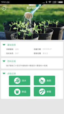 *养护* 相信养花草的人,经常会遇到忘浇水或不同人重复浇水,导致植物干死或烂根枯死的烦恼。为了解决这个问题,我们特别开发了 【花园】这个功能,用户可以在这里面创建自己的宝贝档案,设定各种养护任务(施肥、浇水、换盆、修整等),同时启用提醒功能,这样只要任务一到期,系统将自动提醒用户确认是否完成。后期还可以结合我们开发的植物保姆智能养护硬件,可以自动监测植物光照、温度以及土壤养份、水份,然后通过大数据对比,给用户合适建议和提醒。