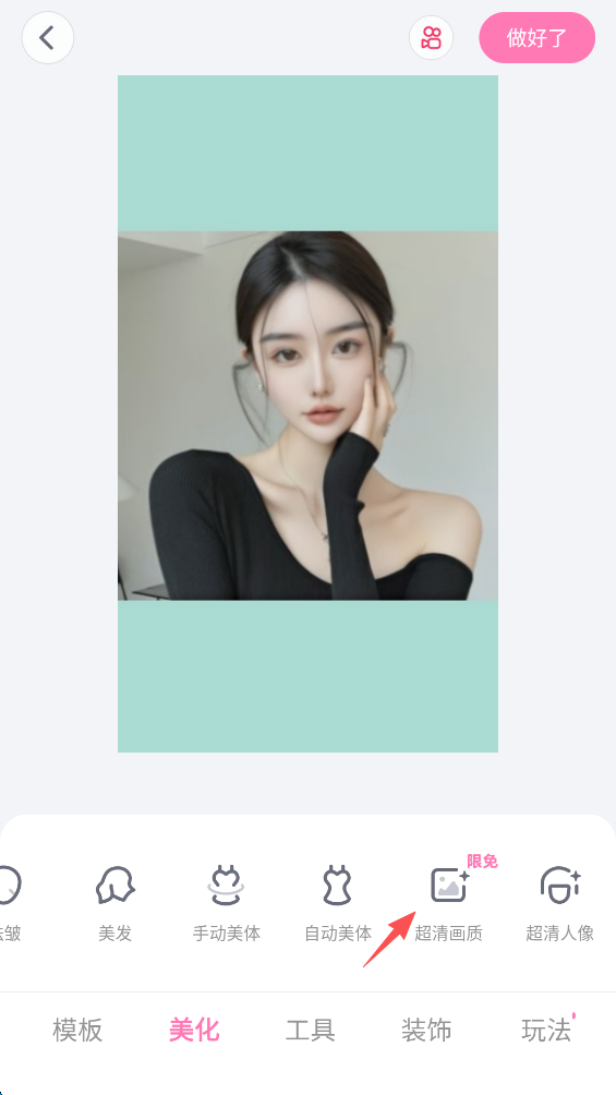 4、将下方P图功能向左滑动,直到找到超清画质。
