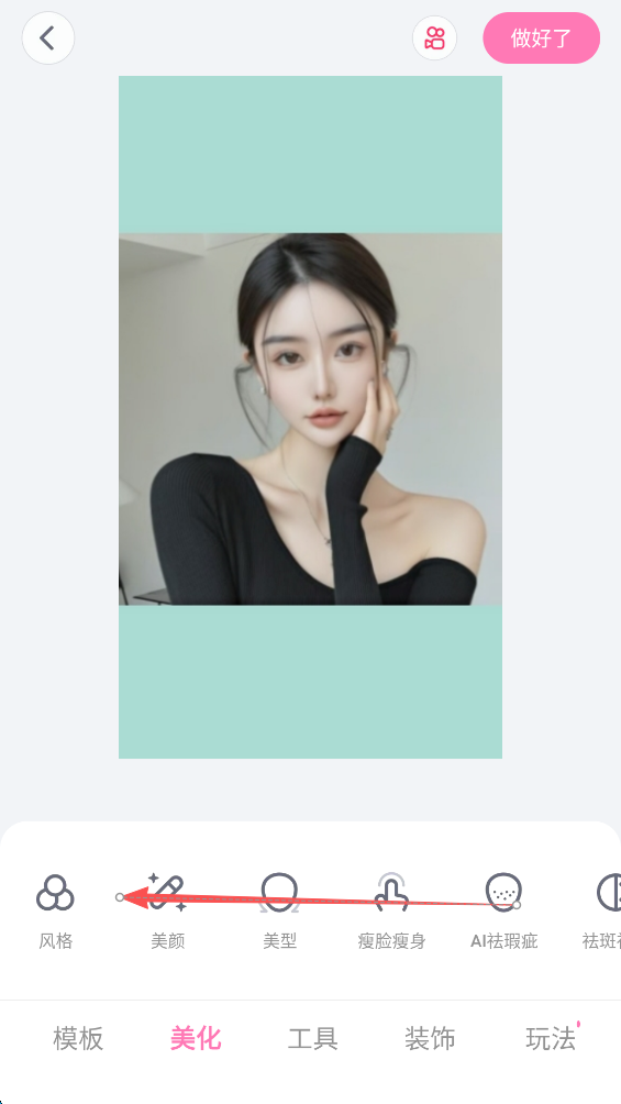 10、可以通过拉动照片下方进度条来调整美颜程度,随后再进行手动微调。