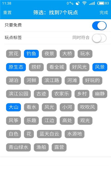 2.快速筛选:一次找到合适的地方,选择标签:休闲,露营,钓鱼,采摘水果,明星。