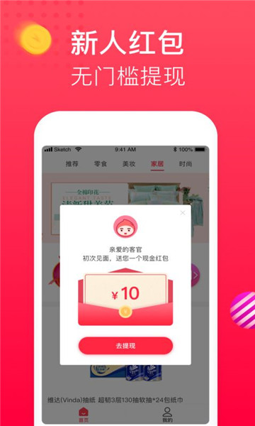 购物返利省,购买任意商品返还现金;