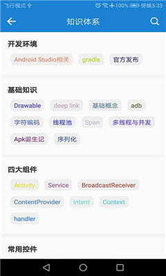 专门提供安卓App开发学习资料。本App主要有我的收藏、知识体系、项目分类、网址导航。而知识体系又分为开发环境、基础知识、四大组件、常见控件、用户交互等种类。点击某个博客或者项目,可以进入详情页面,可以收藏、分享。在首页可以搜索关键字,快速查找相关博客或项目。