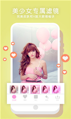 少女p图滤镜app下载推荐给各位美少女!这是一款粉色系照片美化软件,自带美颜功能、多种少女滤镜让你的照片更加梦幻,还为你准备的海量可爱贴纸和特效,让你少女心炸裂。
