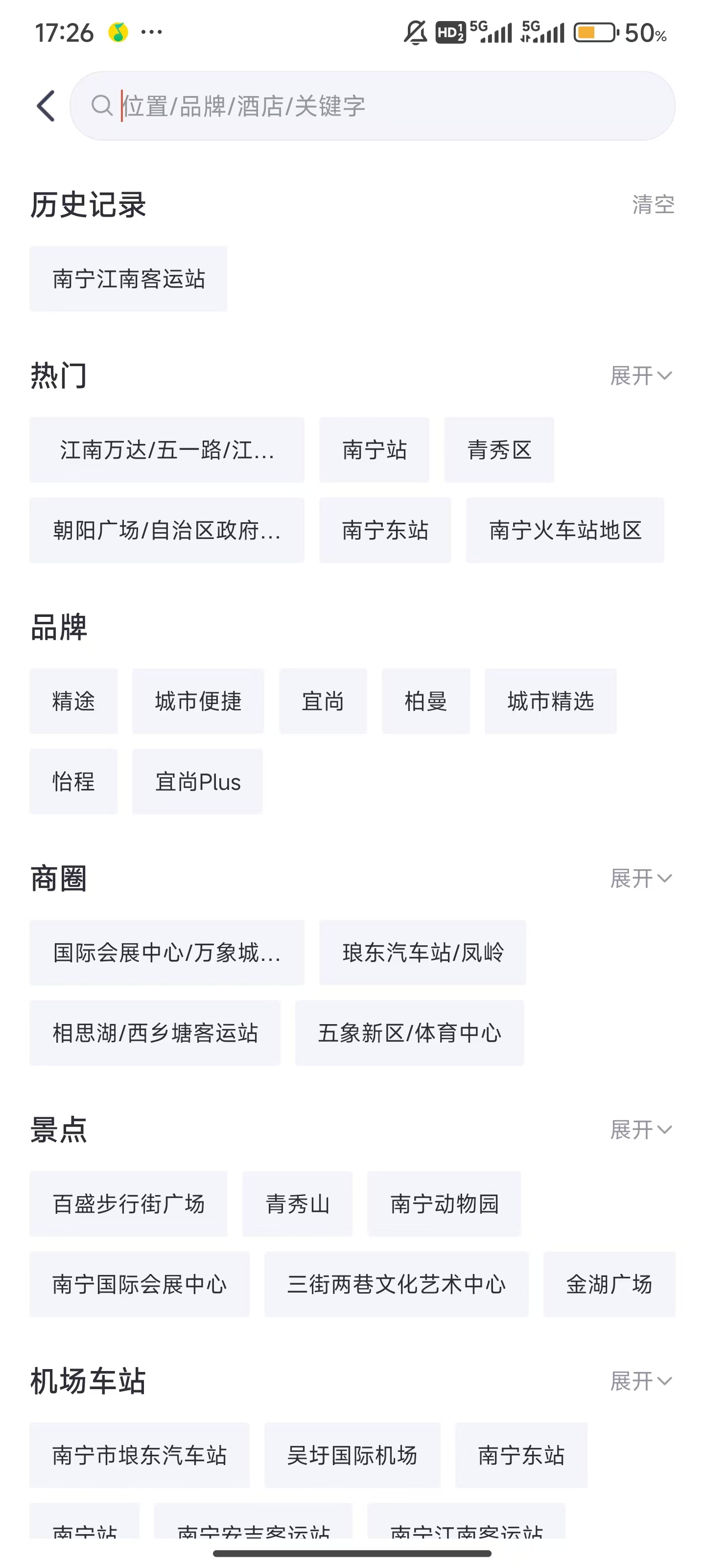 5、点击“关键字/酒店名/地标”。