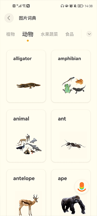 6、有道少儿词典app还提供了看图猜单词功能,所谓学习的方式和类别挺多,让用户在学习的过程中不在单一。