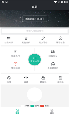 多种做题模式,可按照顺序练习、分章节练习、错题练习、随机练习、未做题练习。
