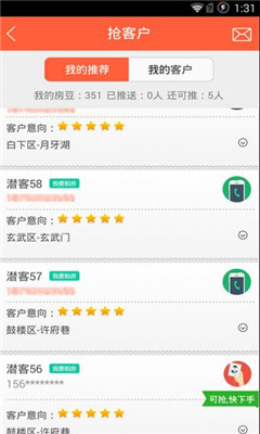 4、经理人随时查看推荐的客户,了解客户信息,随时轻松选择可方便联系,推荐房源。