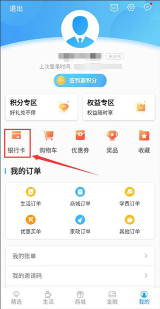 2、进入到我的页面后,需要先进行登录,之后我们再点击左侧的银行卡按钮。