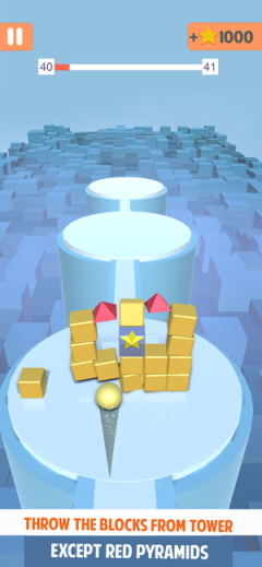 Color Whooper》将一个球从上面向下投掷,击打到的方块越多就可以得到越多的分数,但是不能击打到红色的方块,否则就会提前结束游戏,整个游戏比较的简单,避开红色的方块进行投掷就可以了,没有道具加成,是一个考验眼力的游戏.