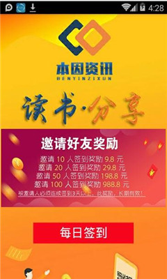 本因资讯app是一款专门为用户们提供一个可以赚钱的手机软件,在本因资讯app里,每天都会及时更新当日超多最新的新闻,热点,并且用户完成阅读任务就能赚钱,天天动动手指,在赚钱的过程中,还能掌握最新资讯。