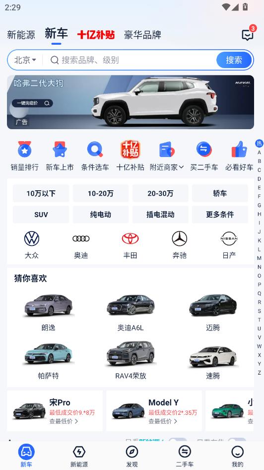 6、查找车型:更便捷的车型品牌列表,更丰富的筛选条件,帮您找到最中意的那款车;