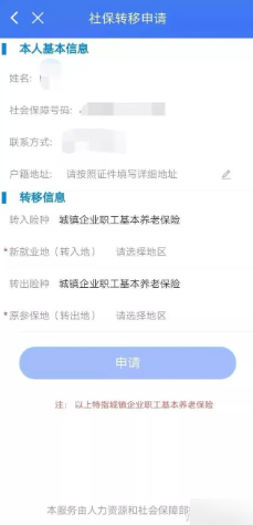 第四步:完成录入并核对无误后,点击“申请”按钮,转移接续申请就完成了。可以随时通过“社保转移申请审核结果查询”和“社保转移进度查询”服务,查询转移申请结果及后续转移进度。