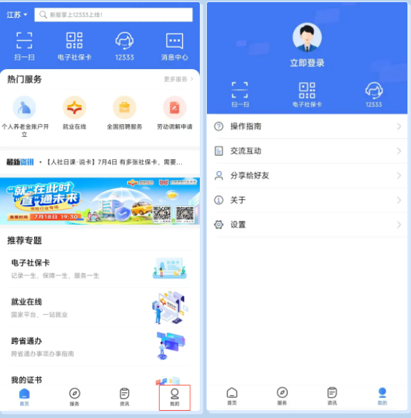01下载“掌上12333”APP,选择下方“我的”,点击“立即登录”。