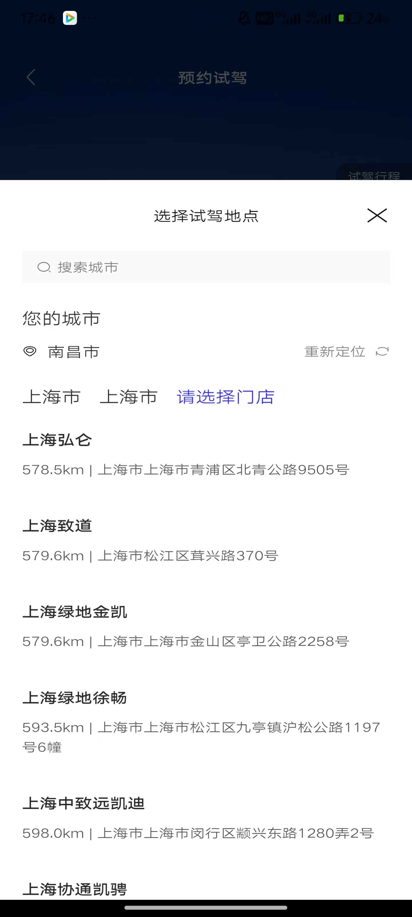 8、这里可以看到试驾门第地址,方便前往。