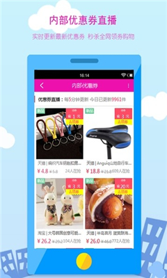 4:每天更新上百款带有内部优惠券的商品,数量多,产品全,优惠券天天送!先领券,再下单,比别人少花钱!淘宝省钱购物APP必备软件!