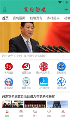 宽甸融媒app内设多个板块,包括宽甸要闻、仙境宽甸、乡村振兴、社会新闻、脱贫攻坚、宽甸特产等,包含视频、音频、图文等多种形式。