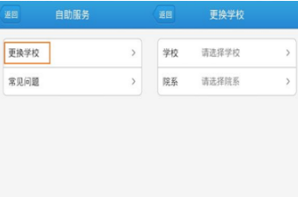 2、在“自助服务”中,我们能看到“更换学校”的选项。点击“更换学校”就能对已绑定的学校进行更换了。但这个更换学校的机会,只有3次。
