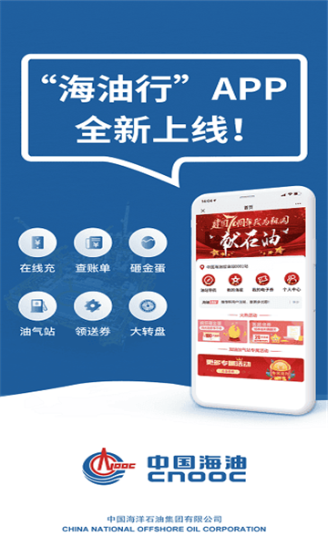 海油行app是由中国海洋石油集团有限公司推出的综合服务平台,主要提供了在线充值,电子券管理,加油站导航,交易查询,新闻资讯,个人信息等多个板块,需要车主绑定相关车辆信息,还可以获取相关优惠情况。