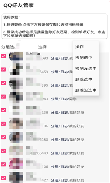 QQ好友管家,管理好友的神器支持批量检测单项删除批量好友删除等操作让你不要怕好友太多 轻松 方便 。