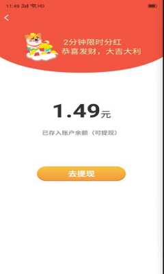 4.限时两分钟结束后可以获得1元左右奖励,在奖励中可以直接提现0.3元。
