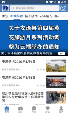 安泽融媒app官方版是一款专门为安泽本地打造的手机新闻客户端!通过它用户可以快速掌握本地最新热点新闻资讯,并且还能享受本地便捷的政务以及民生服务,让用户足不出户在家也能轻松查询办理本地各类事务,需要的小伙伴们快来下载吧!