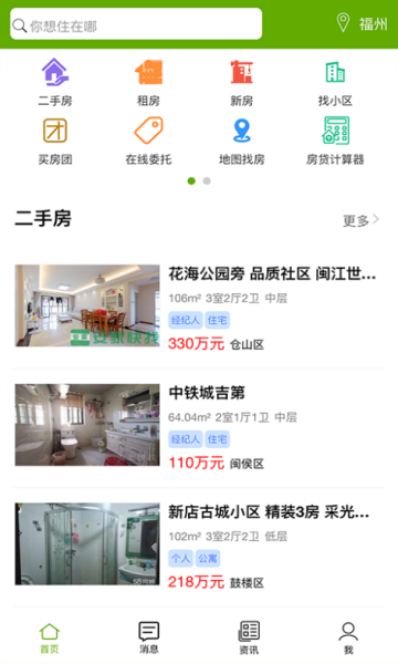海量房源:聚合各地房源信息,有二手房、租房、新房、旅居、海外等房源;