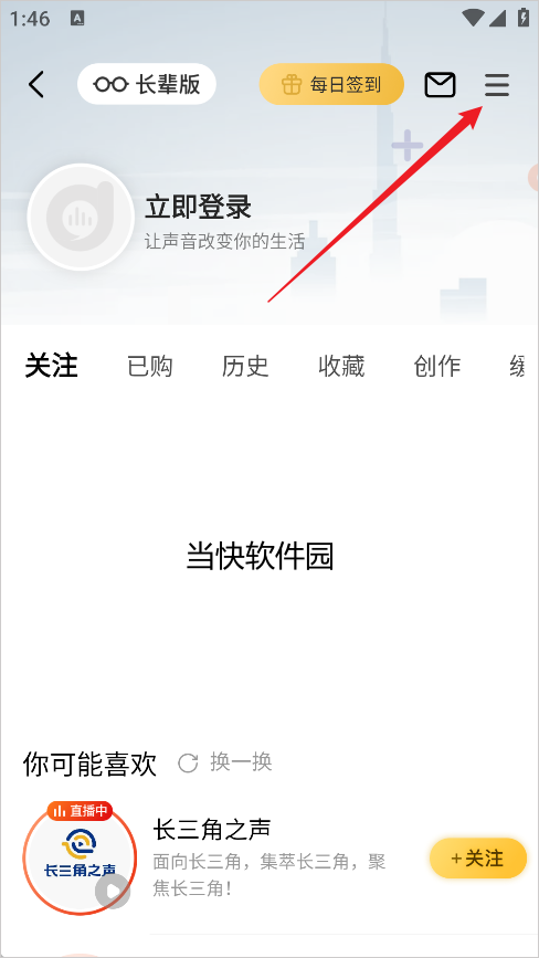 2、进入主页后点击三条横杠
