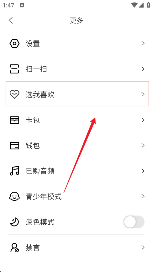 3、在更多页面点击选我喜欢