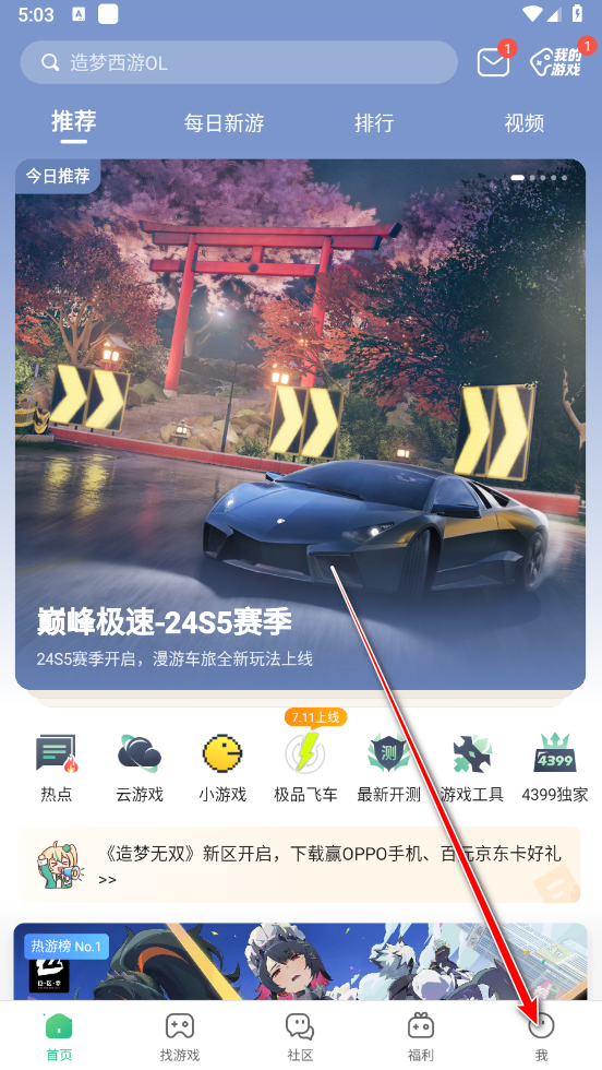 1.打开4399游戏盒,点击下方的我