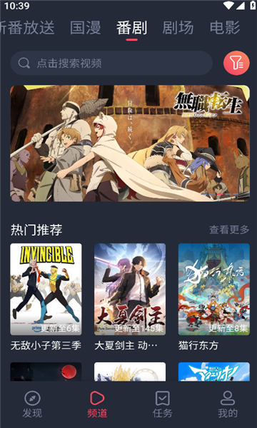 1.打开次元站,可以看到上方有着最新的推荐、新番放送、国漫、番剧、剧场等等板块内容。
