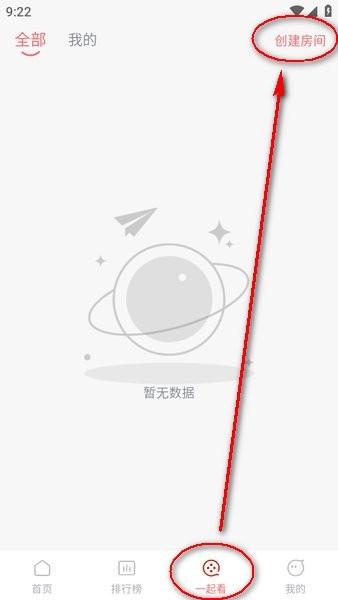 然后点击底部的“一起看”,里面就有其他用户创建的一起看房间;也可以自建房间;