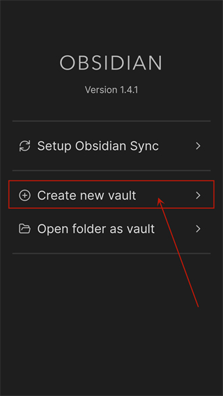 2、单击【Create new vault】创建一个新库,即Obsidian笔记的存储目录,后续将设置为云同步。