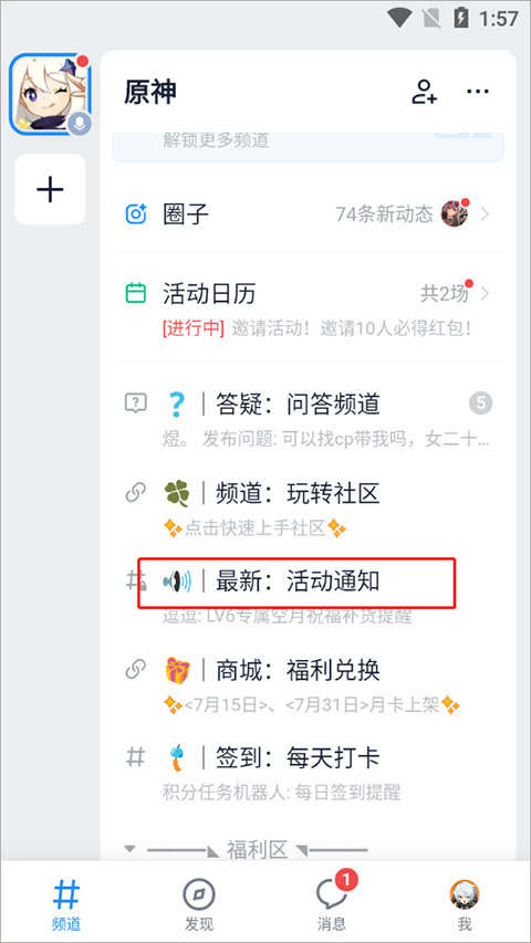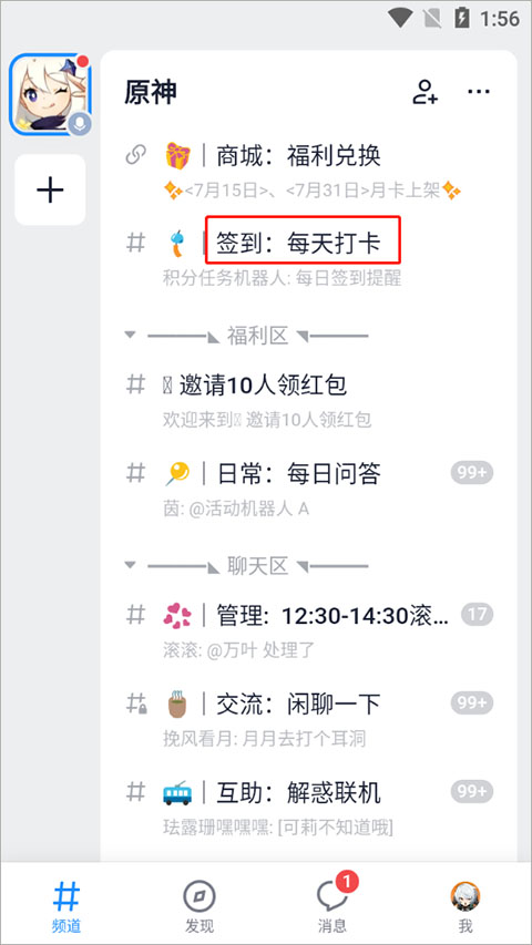 1、进入软件,选择关注的频道进行签到打卡可获得积分